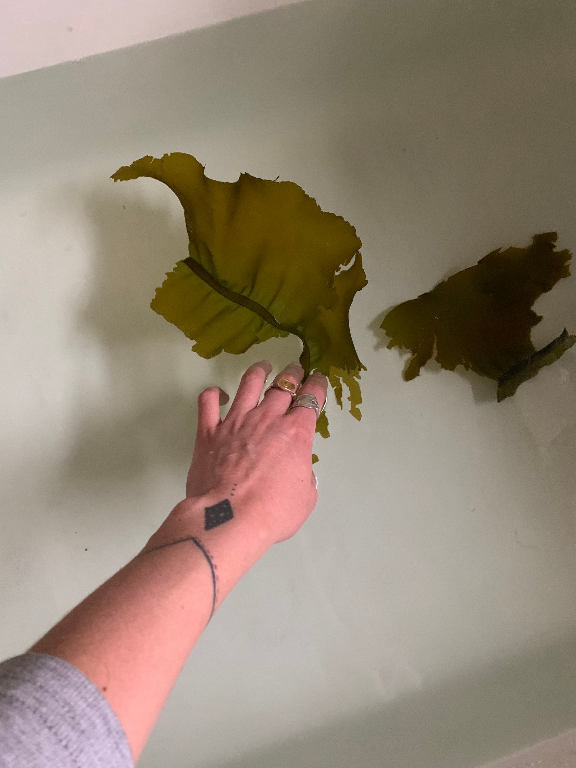 Ethically sourced local pacific winged kelp slow infused in certified organic cold-pressed sesame oil. Organic rosemary essential oil added at low dilution.
